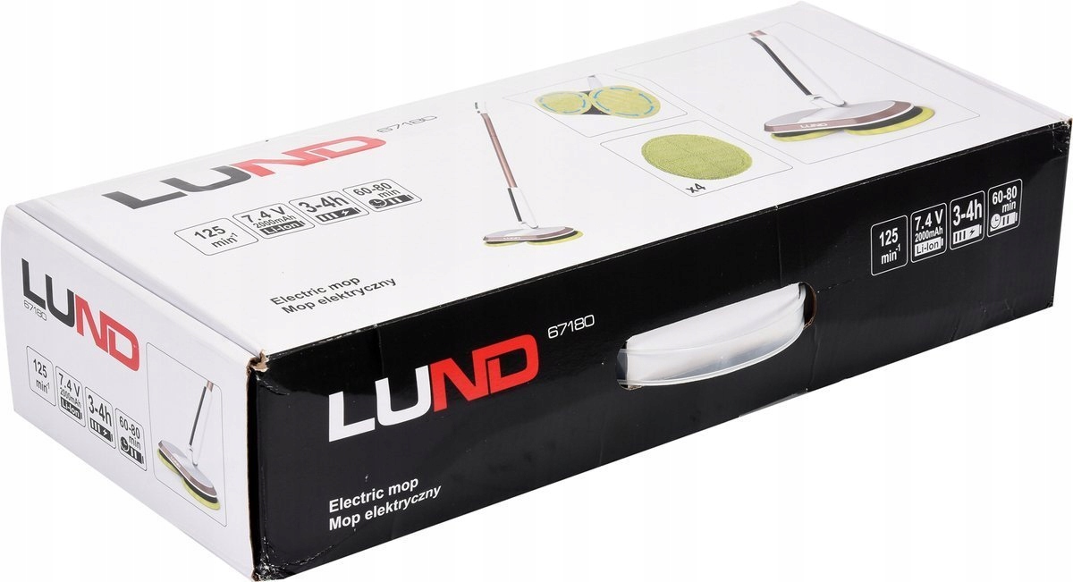 Электрическая швабра LUND с двумя вращающимися подушечками из микрофибры и чистящими подушечками облегчит систематическую уборку полов.