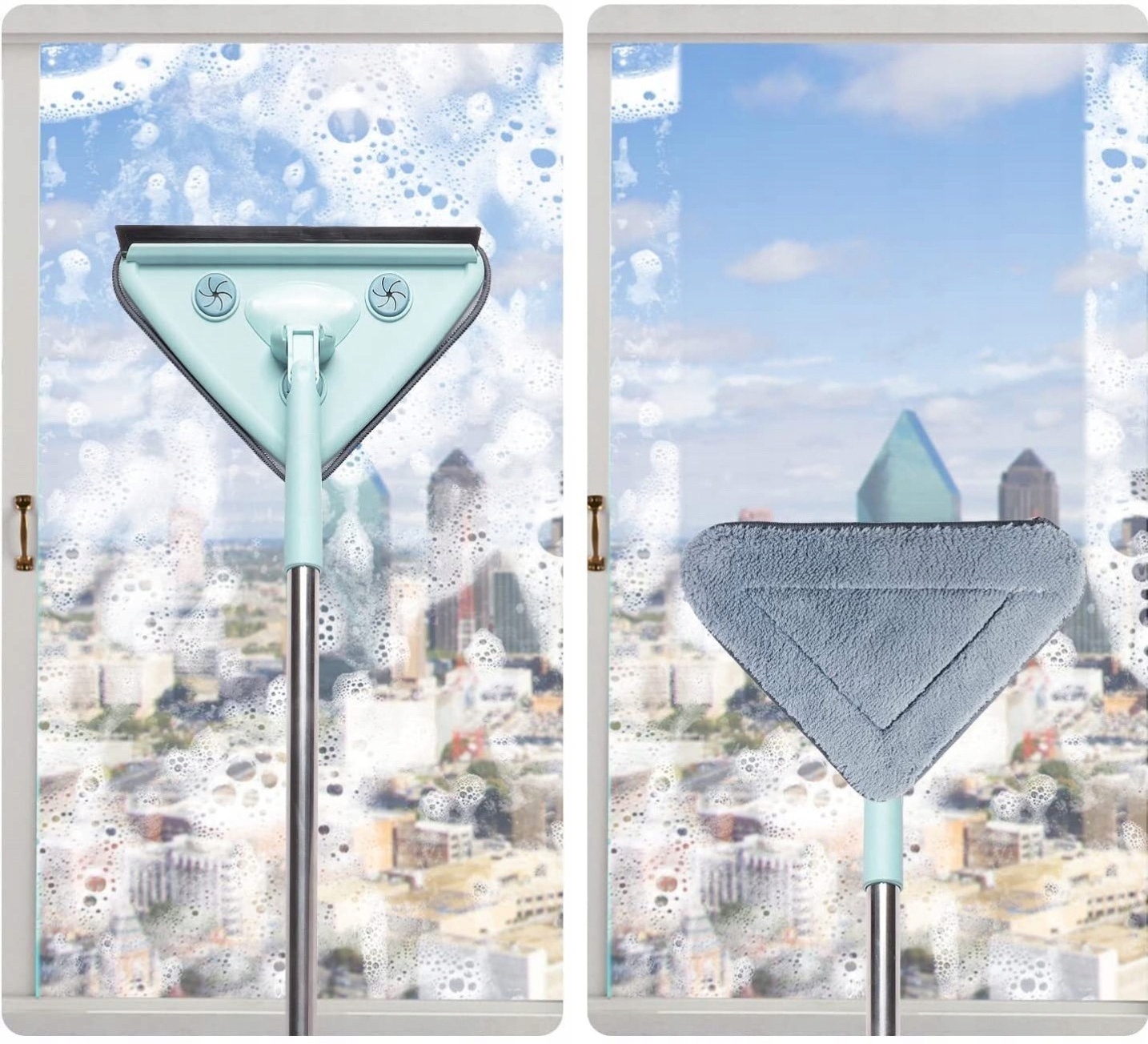 Наша удобная швабра обеспечивает комфортную и безопасную чистку окон даже в труднодоступных местах.