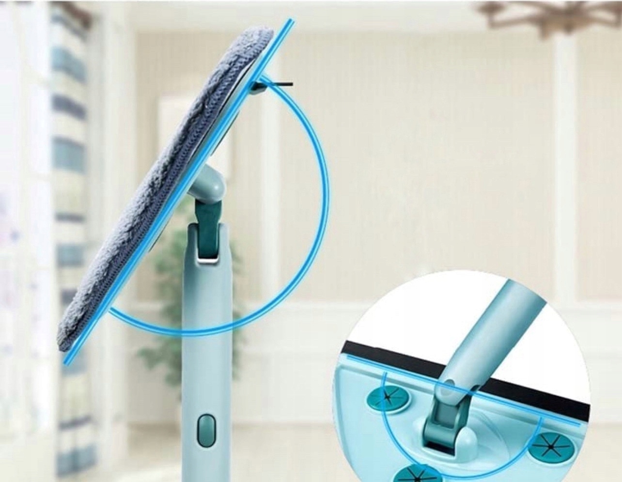 Сзади швабры расположен удобный силиконовый дворник, гарантирующий идеальную чистоту стеклянных поверхностей, не оставляя разводов и капель. Ваше время и усилия будут оценены по достоинству, когда вы увидите результаты стирки.