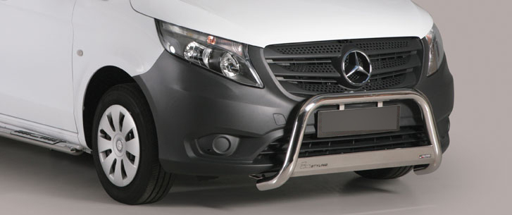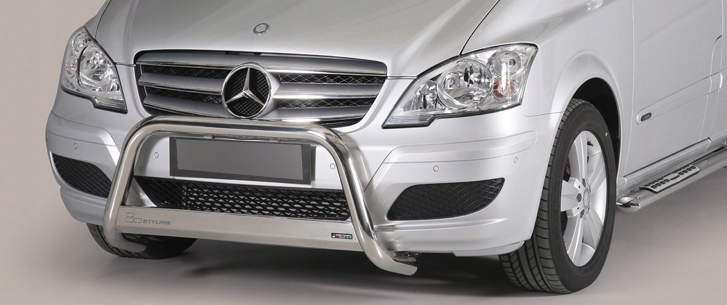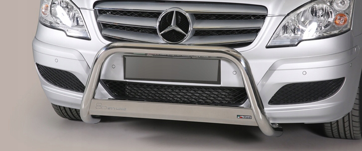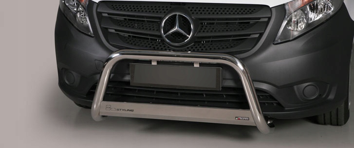 Передняя труба хорошо работает при движении по бездорожью, защищая автомобиль от любых механических повреждений. Прочное качество изготовления повышает безопасность в случае столкновения. Хорошо прилегают к линии кузова, трубы не ржавеют и не меняют цвет. Они обладают высокой устойчивостью к любым погодным, химическим и механическим воздействиям. . В комплект входит передняя обвязка и элементы крепления. Установка неинвазивная, согласно прилагаемой инструкции. Мы рекомендуем профессиональную установку.