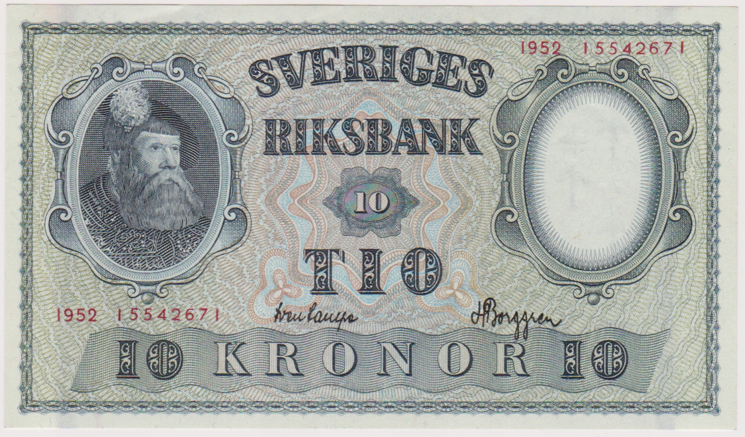 Швеция - 10 крон - 1952 г. - П-40 - ст.1