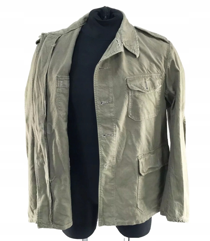 Оригинальная шведская униформа. Там нет информации о году производства. Он выглядит войной или слегка после -привода. Традиционное разрешение, два кармана на груди, два внизу. Цвет - это оттенок серого холста. Куртка находится в очень хорошем состоянии, нет дефектов, кроме отсутствия кнопок. li> Округа грудной клетки 114 см