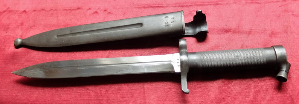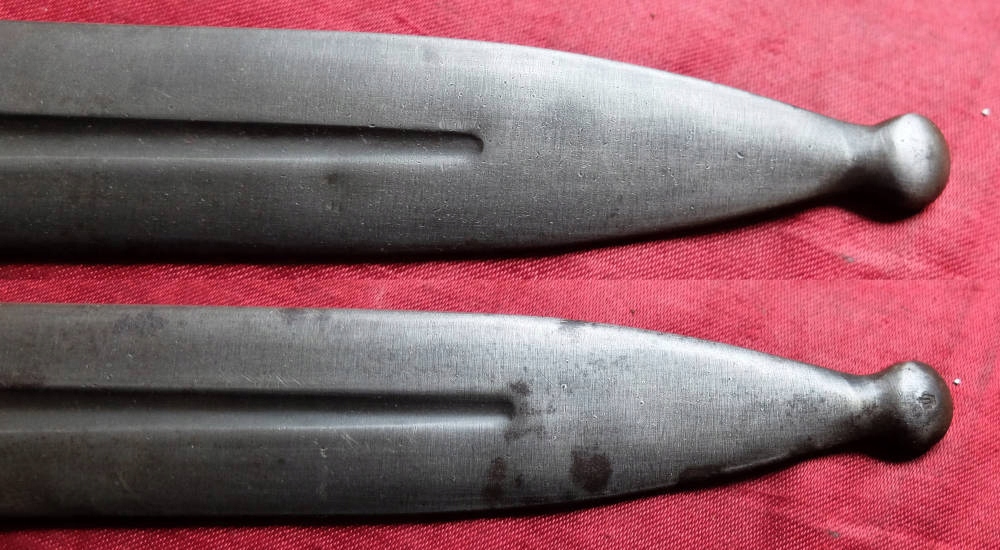 Копия, видимая на прилагаемых фотографиях, очень хорошо сохранилась. Штык имеет дополнительный фиксатор на ножнах, благодаря которому штык создает постоянное соединение с ножнами и может быть использован для обучения штыковому бою.