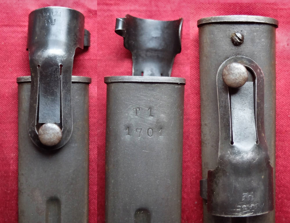 Ножны целые, хорошо подходят к штыку. Направляющая ножен функциональна, а лезвие хорошо помещается в ножнах. На ножнах также видны подписи.