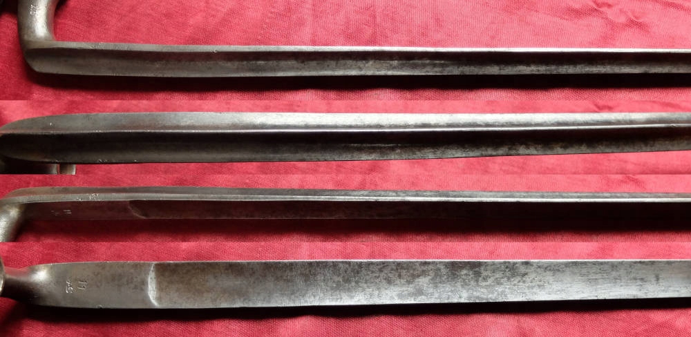 Длина штыка 64,8см, длина гильзы 6,5см, диаметр гильзы ~19мм, ширина клинка 21мм, толщина клинка 12,5мм.