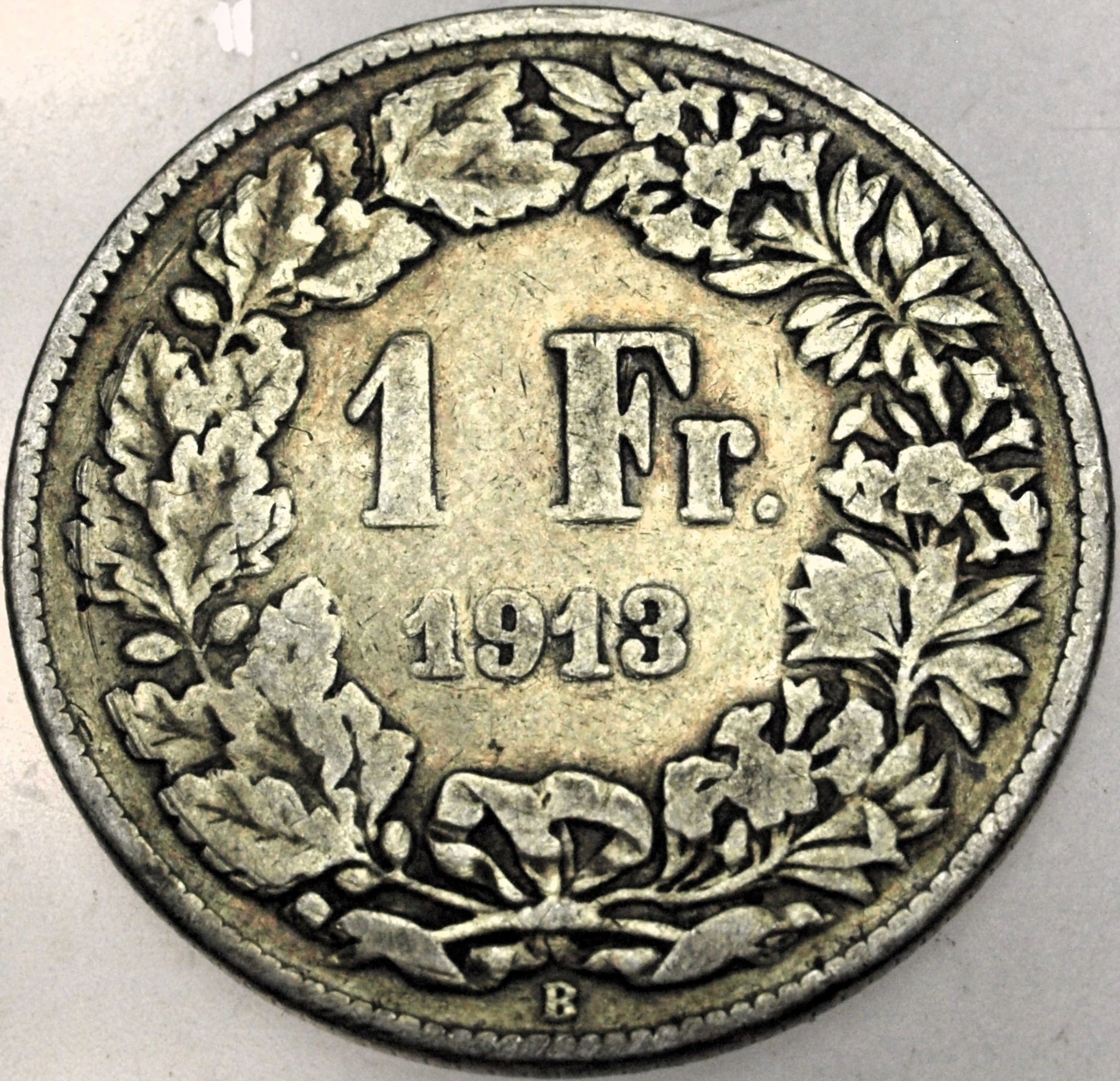 Швейцария 1 франк 1913 года, СЕРЕБРО. Оригинал. ПОСМОТРИТЕ ДРУГИЕ АУКЦИОНЫ - СОБЕРИТЕ РЕДКИЕ ЦЕННОСТИ ОТ НУМИЗМАТО!
