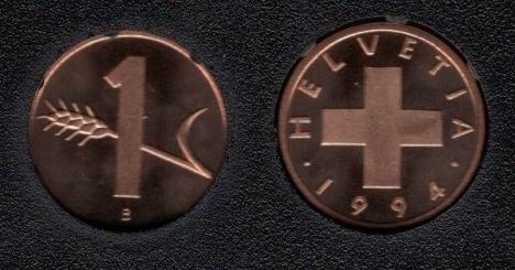 Швейцария 1994 1 Раппен из набора