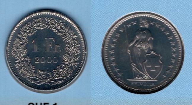 ШВЕЙЦАРИЯ 2000 1 ФРАНЦУЗСКИЙ ИЗ НАБОРА