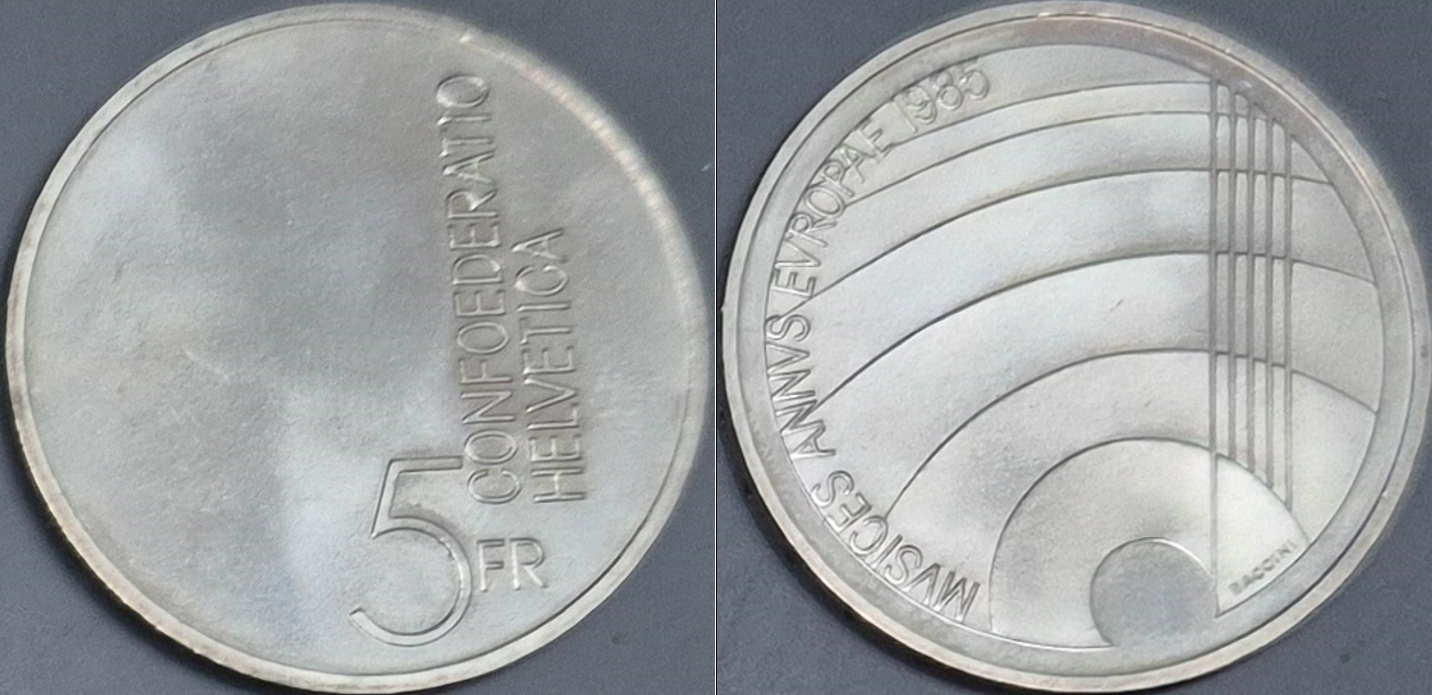 Швейцария 5 франков 1985 КМ 64 Европейский год музыки
