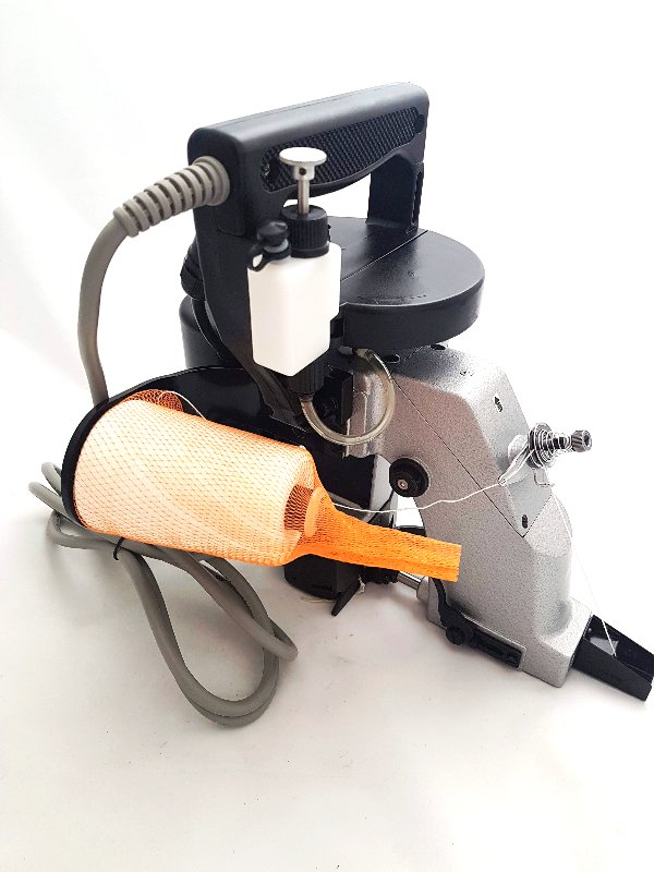 Портативная швейная машина, оснащенная центральной системой смазки и ножом для обрезки нити. Швейная машина предназначена для пошива многослойных ПП/ПЭ-мешков, а также хлопчатобумажных и льняных сумок.