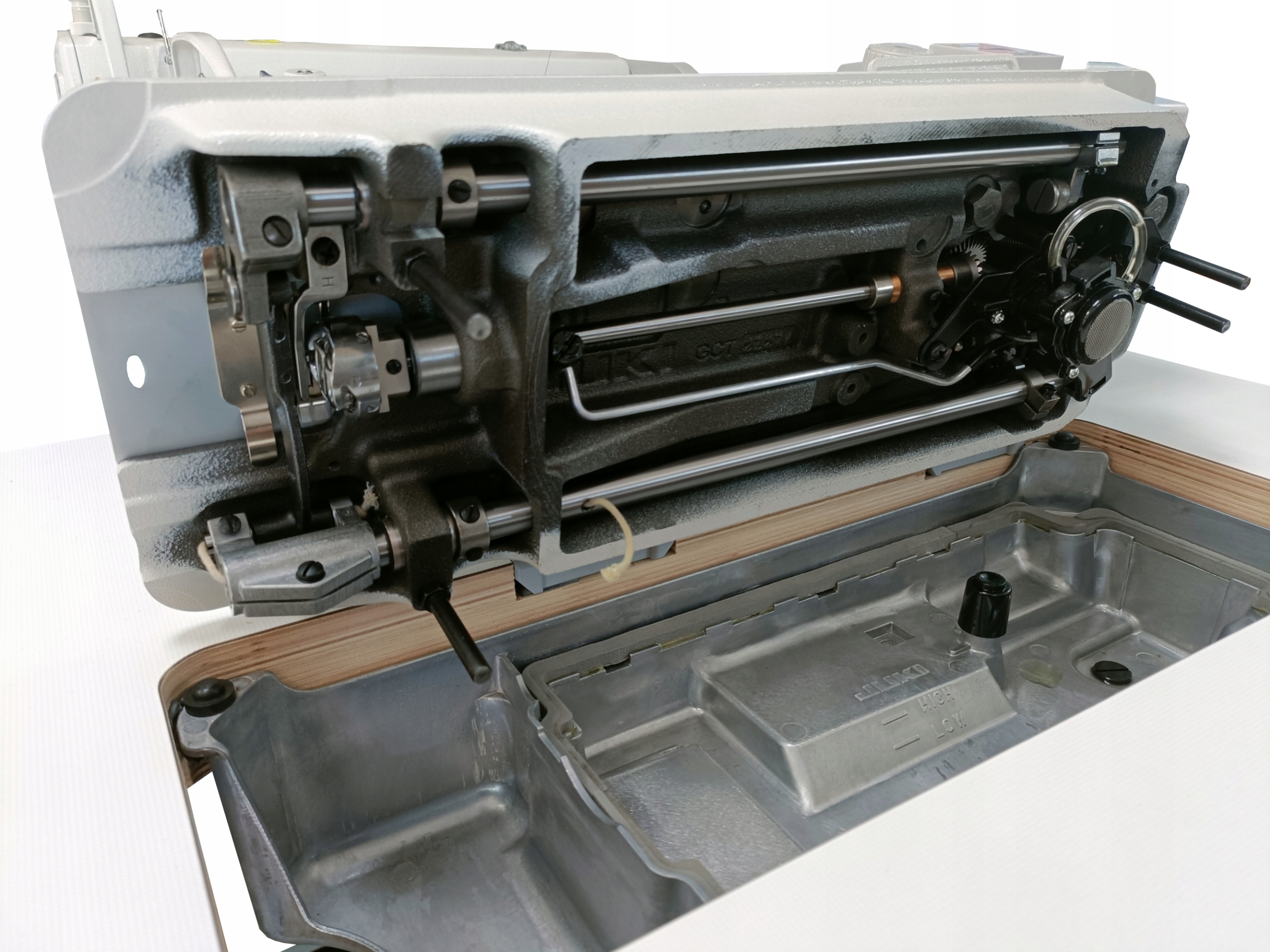 Машина челночного стежка имеет эффективная централизованная система смазки с традиционным масляным поддоном.