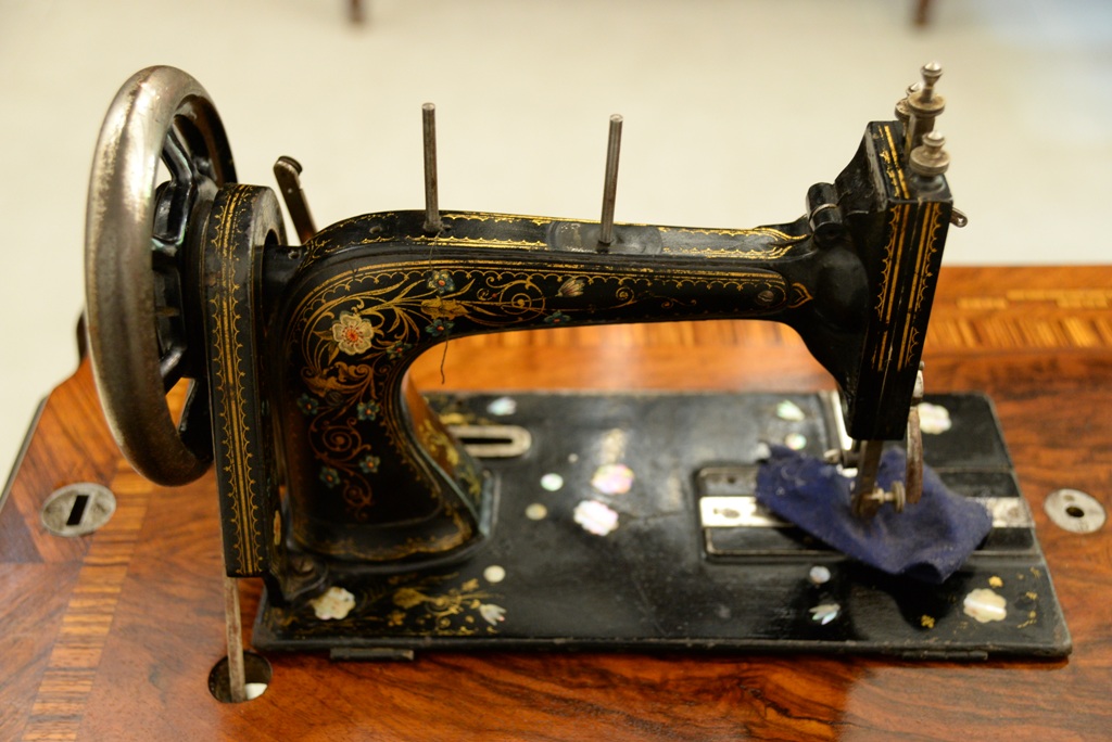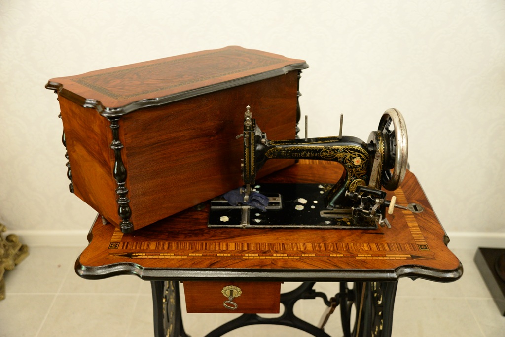 Очень интересная и редкая швейная машинка в такой красивой форме середины 19 века (Бидермейер/Людвик Филип)!