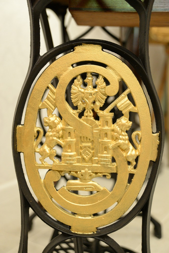 Сам чугунный стол подвергся пескоструйной обработке, цвета были обновлены - черный и золотой.
