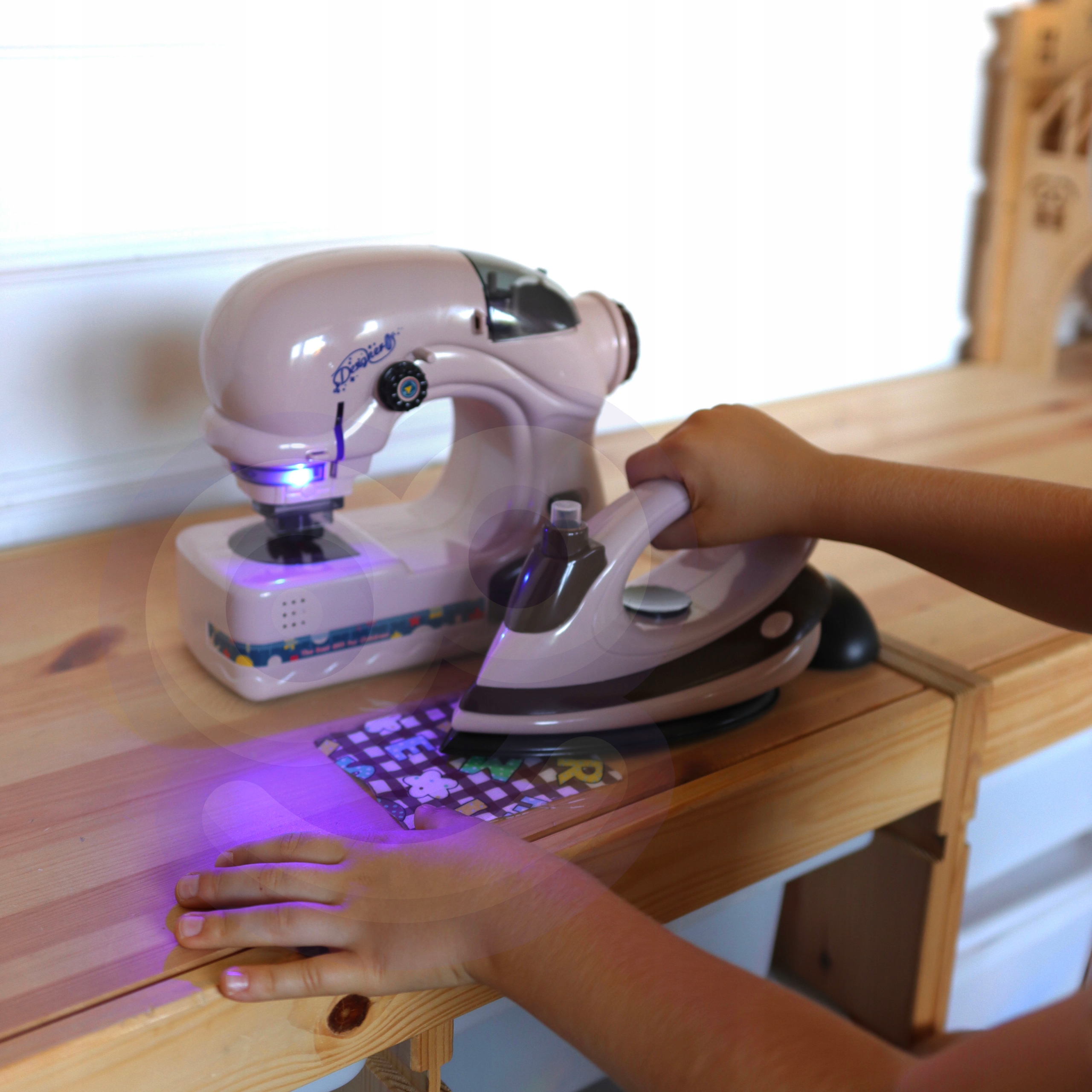 Набор мелкой бытовой техники 2in1 от бренда WOOPIE прекрасно имитирует реальные устройства . В комплект входит утюг и швейная машинка. Утюг — игрушка, безопасная для детей, поскольку он не нагревается. Он оснащен множеством функций, которые разнообразят веселье: светящаяся светодиодная лампа, вибрации звуковые эффекты и функция распыления после наполнения утюга водой. Игрушка также работает без наполнения водой. Благодаря датчику утюг вибрирует, когда его кладут на ровную поверхность и при перемещении по ней.