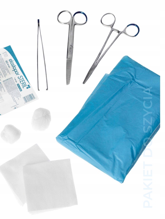 1 шт. – простыня хирургическая (синяя SMS) размеры 45 см х 45 см, используется для упаковки аптечки.
