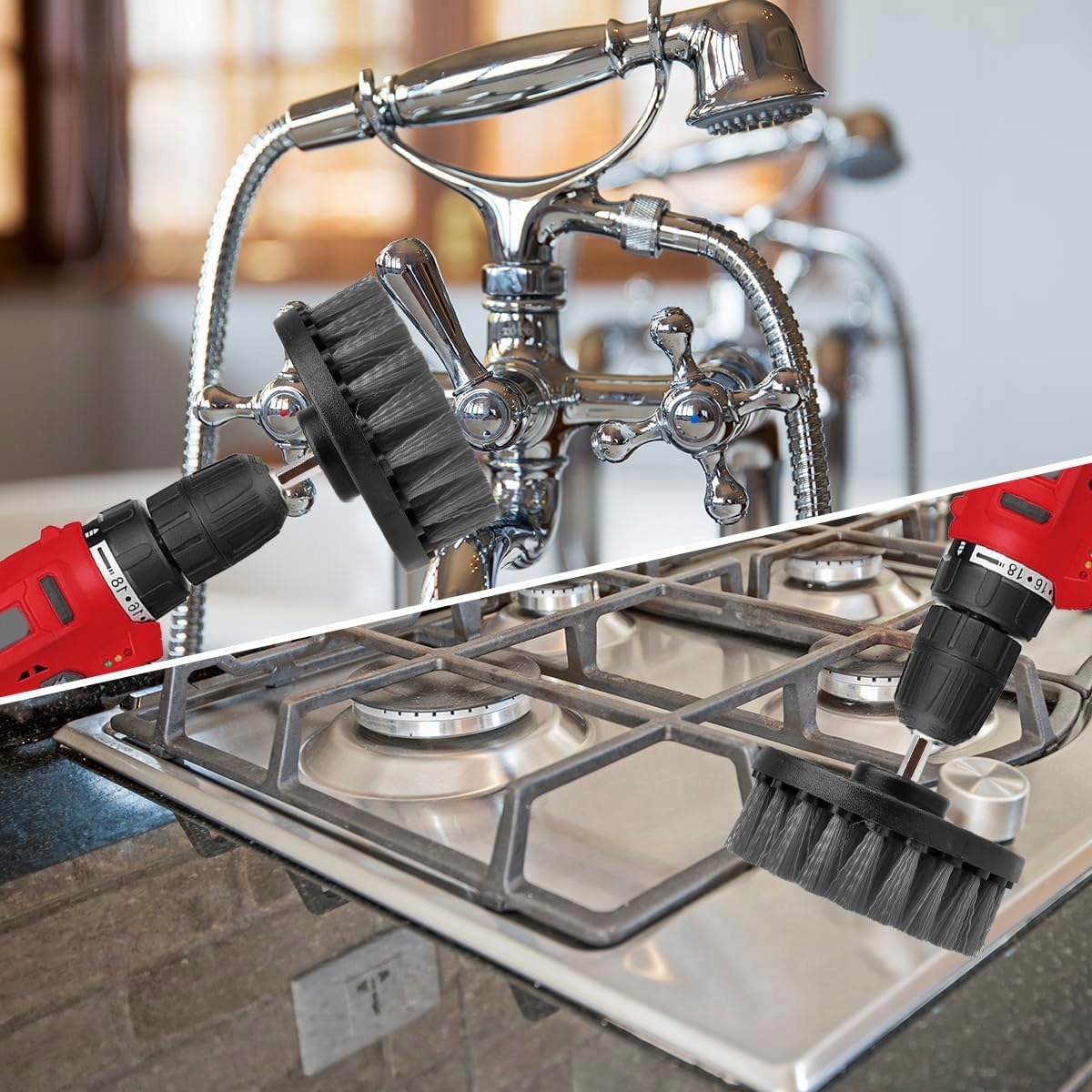 👍 【【 360 ° буровых кистей. Сэкономьте время】 совместимы с почти беспроводными сверлами или отвертками хода с шестигранными гнездами 1/4. Постоянная чистка работает быстрее и более точной очистки. Долгосрочная эффективность очистки.