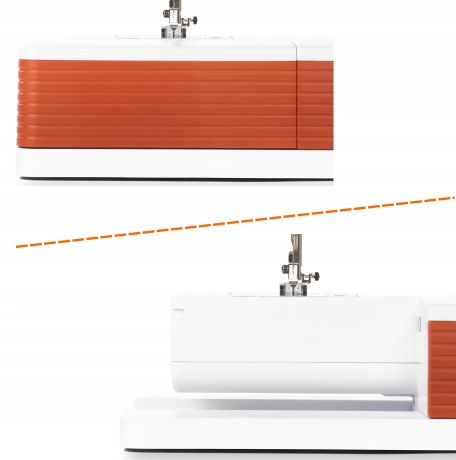 После снятия контейнера для аксессуаров можно пришить свободный рукав. Расстояние от иглы до корпуса в этой модели целых 16,5 см. Что дает вам широкие возможности.