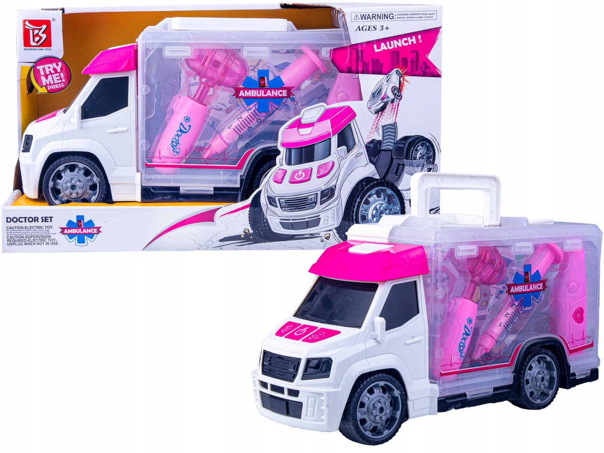 Машина скорой помощи – незаменимый автомобиль для каждого маленького медика. В комплект входят необходимые аксессуары, в том числе: шприц, стетоскоп, термометр.