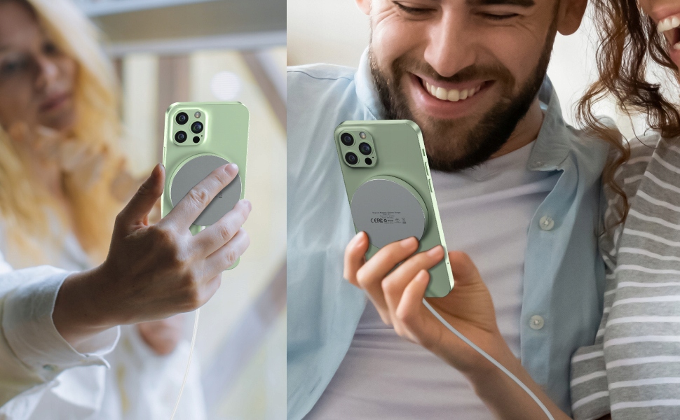 - 【Разработано для iPhone 13/12】 Новая магнитная технология, нет проблем с настройкой, идеально защелкивается и фокусируется на бассейне зарядки на заднем плане 13/12, iPhone 13/12 Pro, iPhone 13/12 Mini, iPhone 13/12 Pro Max. До 7,5 Вт, безопасная, беспроводная зарядка. Он также может заряжать наушники AirPods Pro 2, используя чехл беспроводной зарядки, если он используется в качестве прокладки.