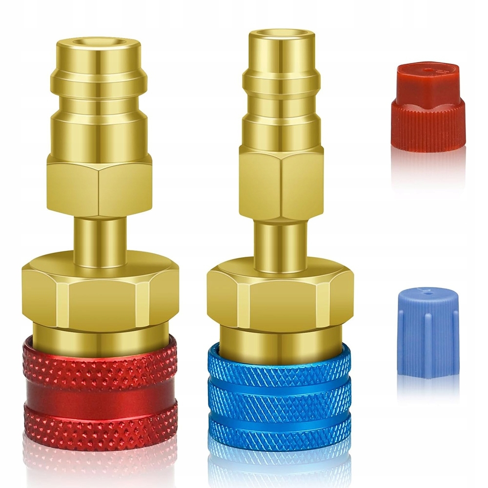 Низкое давление (синий) быстрое соединение: разъем R1234YF 14 мм самка × 1/4 дюйма SAE. Адаптер R12/R134A: 1/4 дюйма SAE самка × R134A 13 мм Низкое давление.