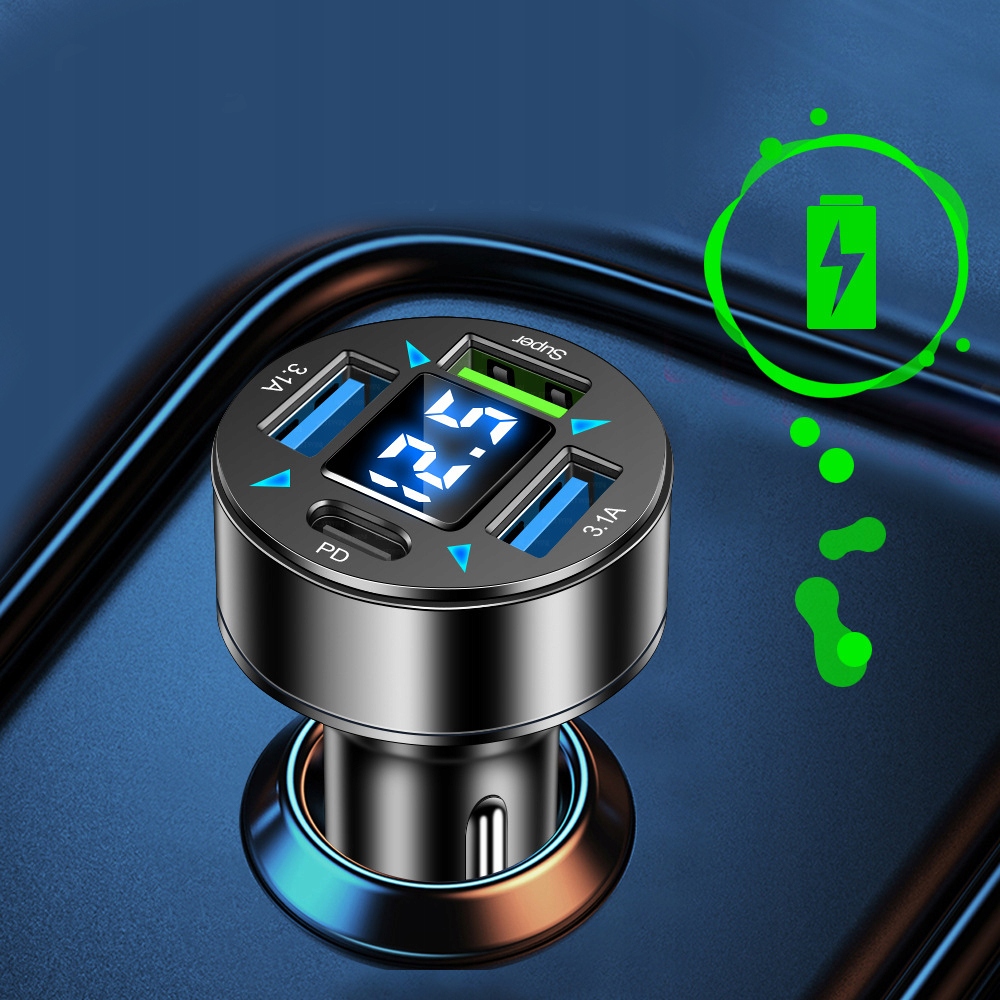 ШВИДКИЙ 3.1A LED АВТОМОБІЛЬНИЙ ЗАРЯДНИЙ ПРИСТРІЙ QC 3.0 x3 USB + PD 66W