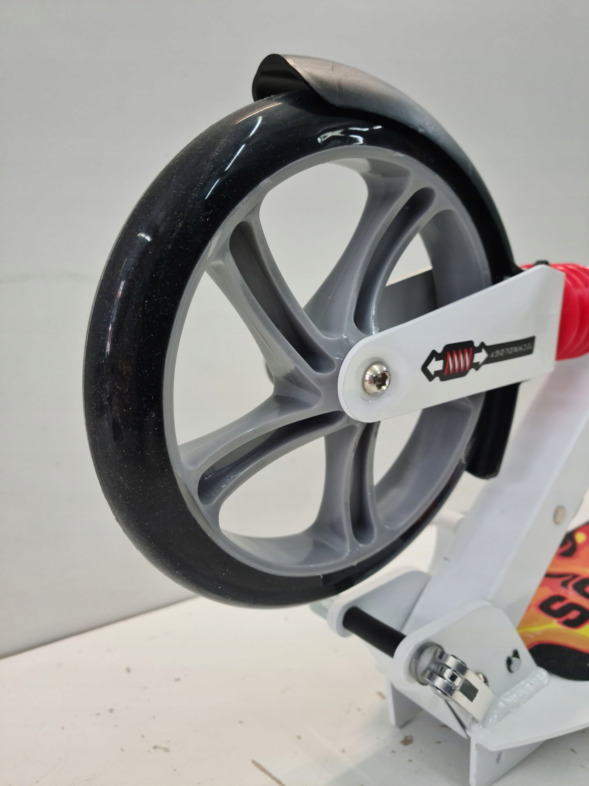 Светлый и гибкий контроль скутера обеспечивает маневренность скутера. Передняя и задняя двойная подвеска позволяет нежную и удобную езду по твердой и неровной местности, поэтому она подходит для асфальтовых или парковых тренировочных маршрутов, прочная обработка алюминия обеспечивает стабильность, но также делает его очень легким автомобилем с максимальным весом 5,9 кг