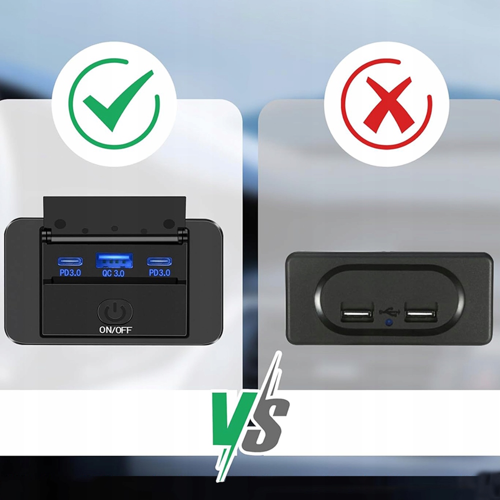 🔌 Fast charging 90W - Two PD30 ports and one QC30 allow you to simultaneously charge three devices with a maximum power of up to 90W ⚡