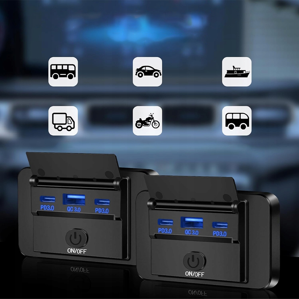 Быстрое автомобильное зарядное устройство 12V24V 2xpd 1xqc для GPS и телефонов