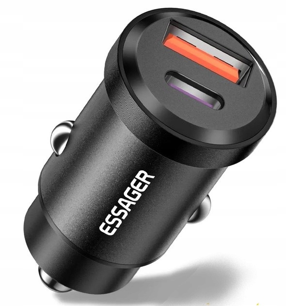 БЫСТРОЕ АВТОМОБИЛЬНОЕ ЗАРЯДНОЕ УСТРОЙСТВО 30 Вт Type-C PD 5A QC4.0 USB-C + USB-A ESSAGER