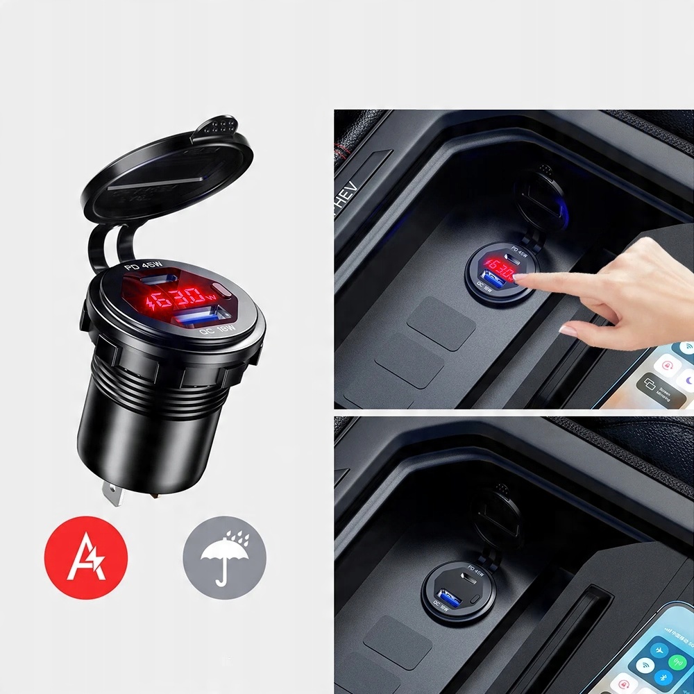 Быстрое автомобильное зарядное устройство для мотоцикла, 63 Вт, 2 порта USB TYPE-C PD, 45 Вт, Вольтметр