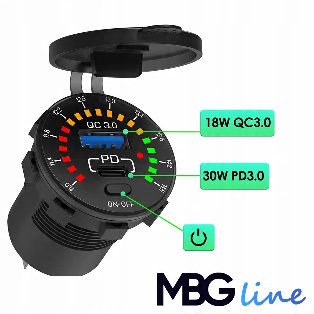 ⭐ Водонепроницаемое сверхбыстрое зарядное устройство MBG LINE для мотоцикла, скутера, квадроцикла, моторной лодки 2x USB: QC3.0 + USB-C PD30W! ⭐