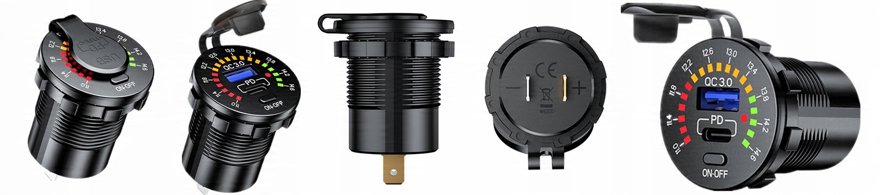 ✔️ Зарядное устройство для мотоцикла USB QC3.0 + USB-C PD45W ВОЛЬТМЕТР + сенсорная кнопка