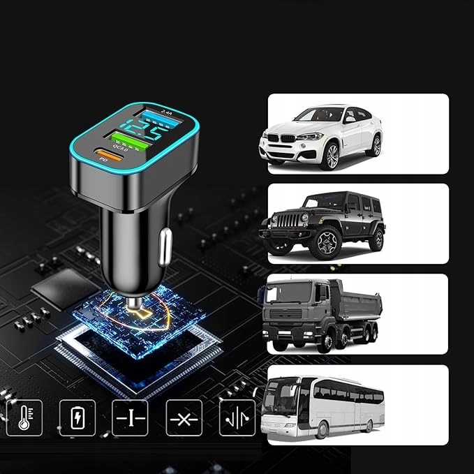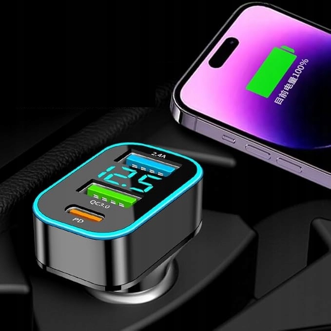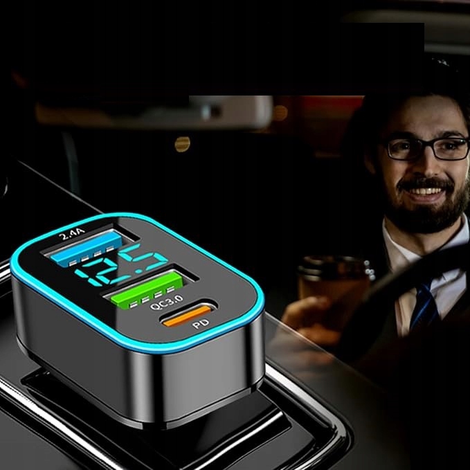 БЫСТРОЕ АВТОМОБИЛЬНОЕ ЗАРЯДНОЕ УСТРОЙСТВО QC3.0 + PD + 2,4 А USB 66 Вт СО СВЕТОДИОДНЫМ ВОЛЬТМЕТРОМ