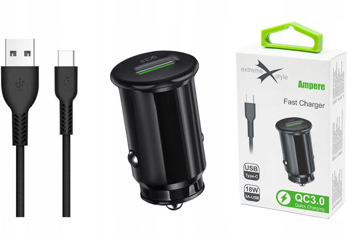 ШВИДКИЙ АВТОМОБІЛЬНИЙ ЗАРЯДНИЙ ПРИСТРІЙ USB + КАБЕЛЬ USB TYPE-C