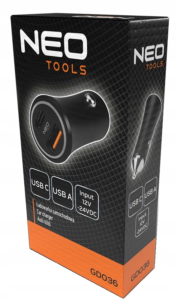 NEO Tools представляет современное автомобильное зарядное устройство мощностью 30 Вт, предназначенное для пользователей, которые ценят производительность, надежность и стиль. Компактное устройство позволяет заряжать два устройства одновременно — через порты USB-A и USB-C — с полной поддержкой технологии быстрой зарядки: Power Delivery (PD) и Quick Charge™ 3.0 (QC3.0).
