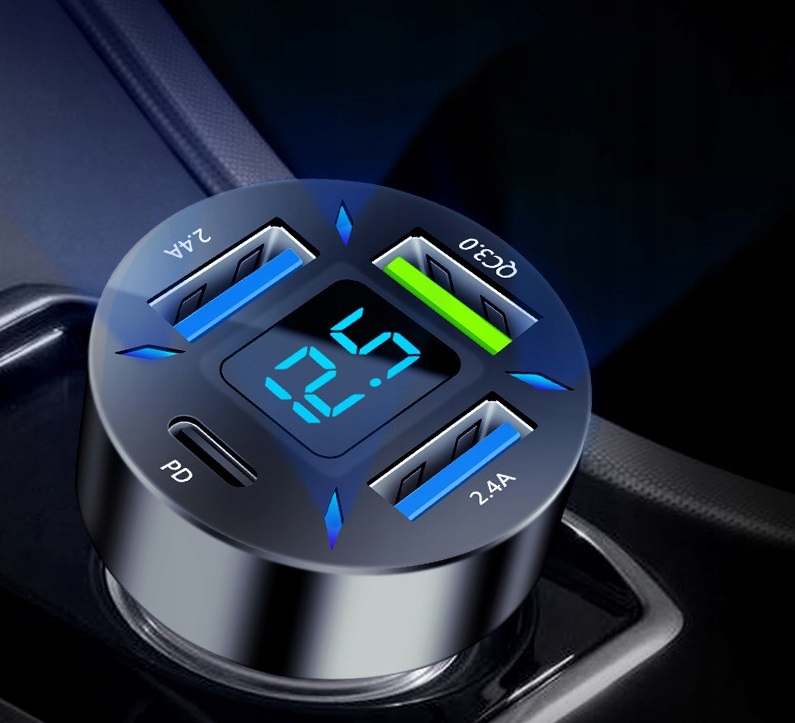 Быстрое автомобильное зарядное устройство имеет четыре зарядных порта. Один порт Super QC3.1 предназначен для сверхбыстрой зарядки и три порта 3,1 А для быстрой зарядки