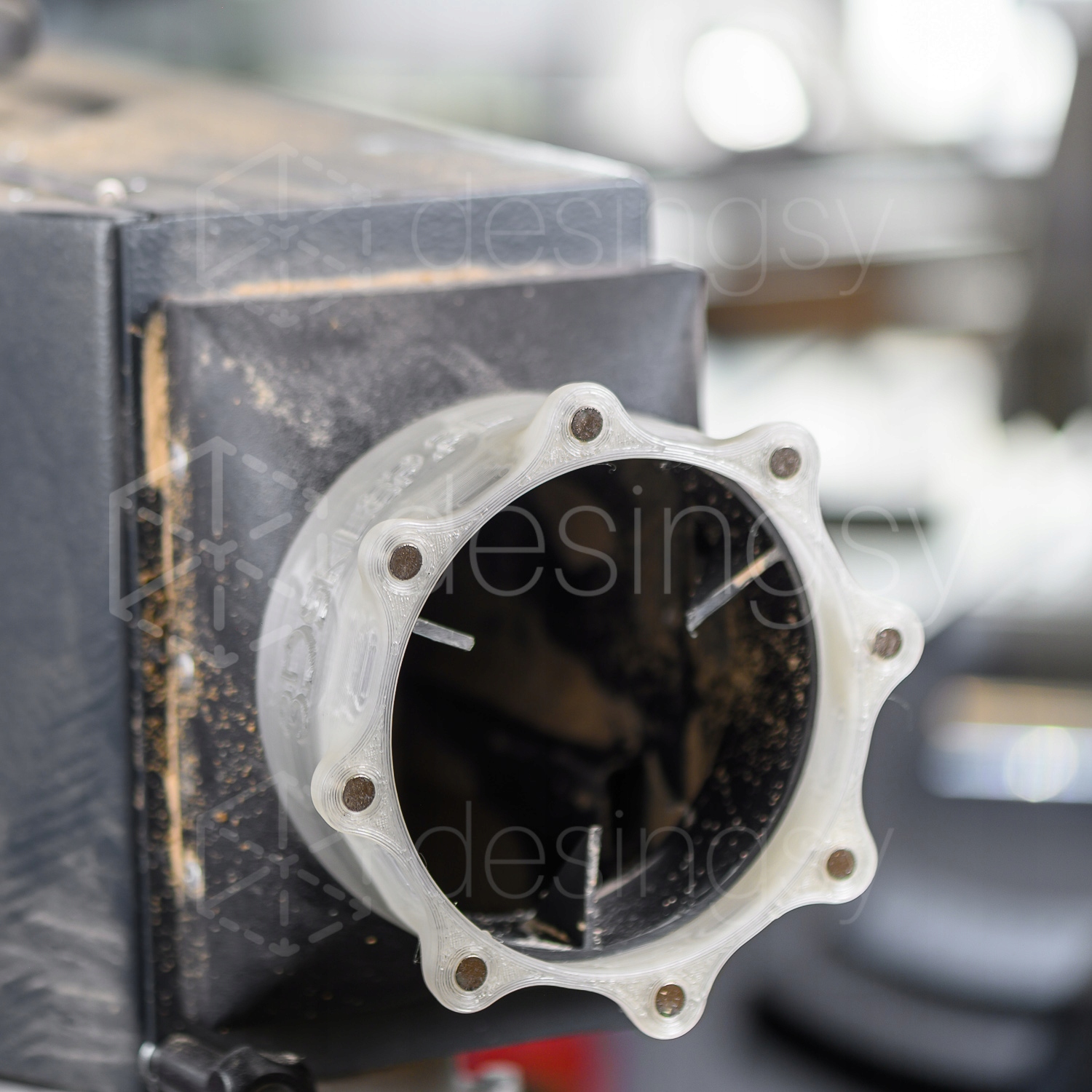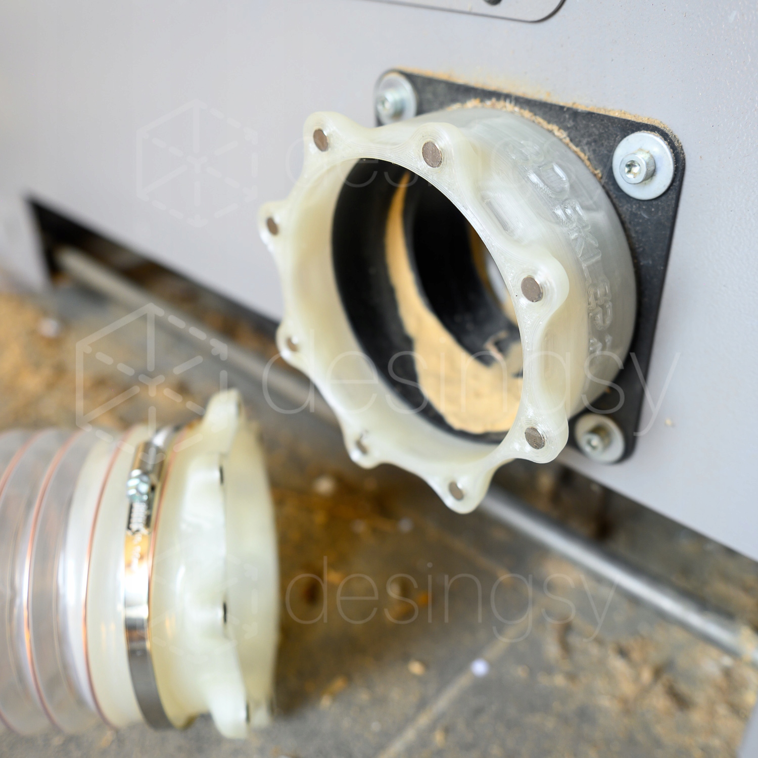 Печатный магнитный соединитель MAGSPIRO™, адаптированный к вытяжным соединениям на станках Felder и Hammer с выходами диаметром около Ø120 мм.