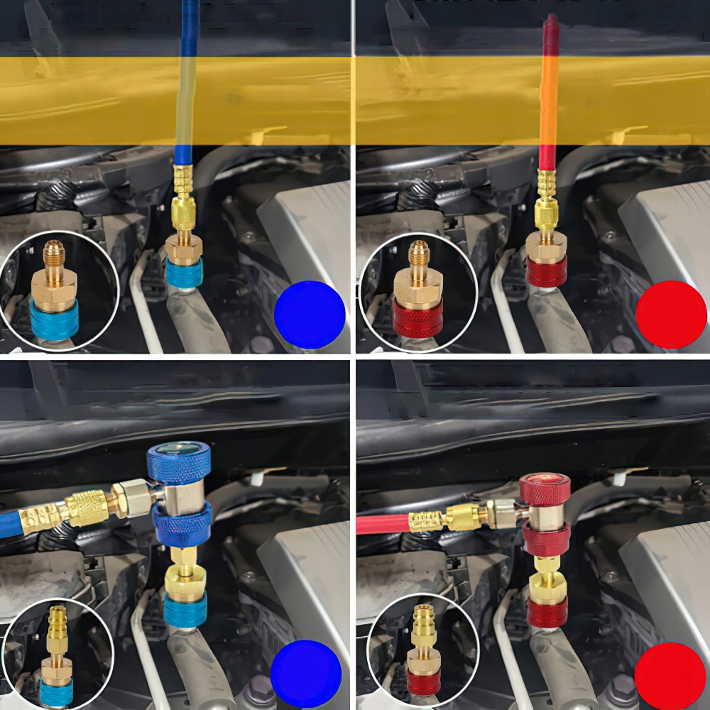 【Легко в использовании】 Наш адаптер R1234YF для R134A оснащен функцией автоматического выключения и конструкцией сжимания, так что вы можете легко удалить его и установить.