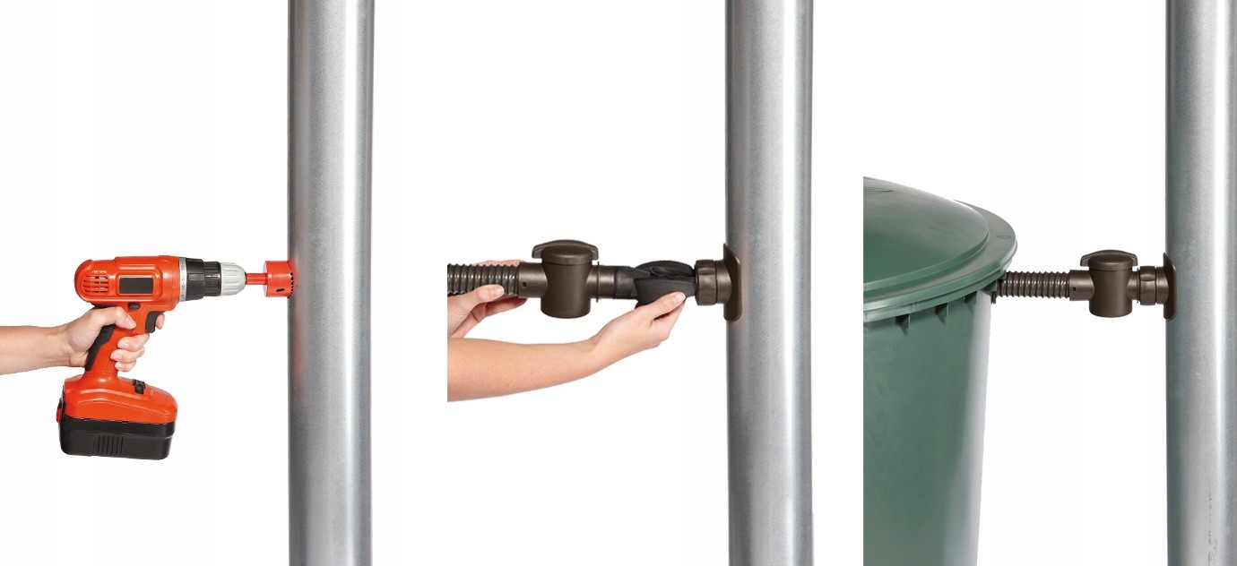 Водосборник собирает дождевую воду из водосточной трубы до тех пор, пока вода в резервуаре не достигнет уровня, на котором установлен коллектор. Излишки стекают дальше через сливную трубу.