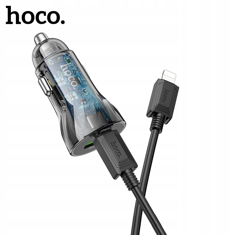 hoco Z47A Transparent Discovery Edition — быстрое автомобильное зарядное устройство с двумя выходными розетками: одной USB Type-C/Type C с максимальной мощностью 30 Вт и одной USB-A в стандарте Quick Charge 3.0/ QC3.0 с максимальной мощностью 18 Вт, поддерживающий такие стандарты быстрой зарядки, как QC3.0/QC2.0/Huawei FCP, Apple PD20W или Samsung AFC. В комплект дополнительно входит кабель с разъемом USB Type-C/Type C на Lightning длиной 1 М/100 СМ.