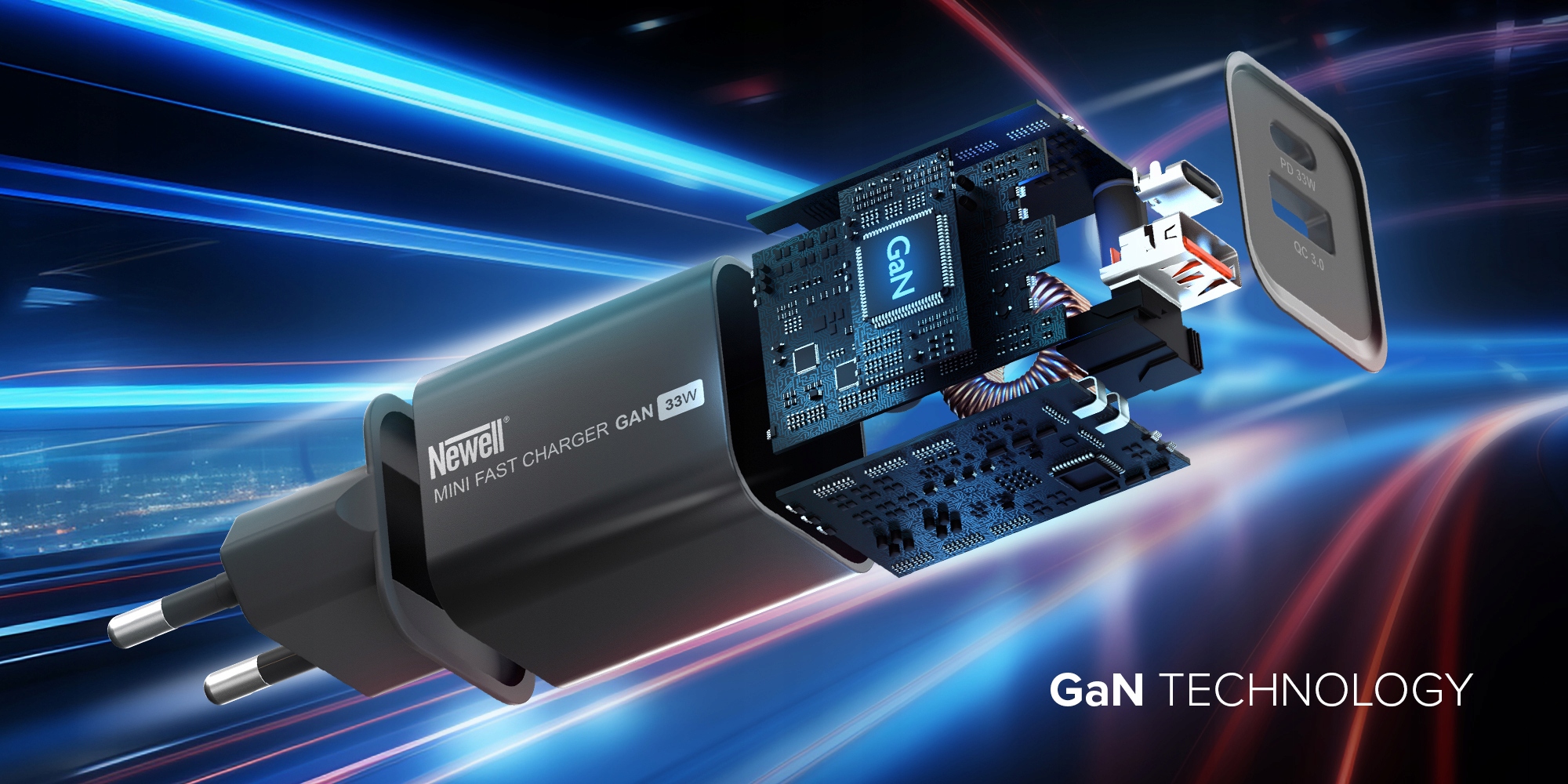 - Сетевое зарядное устройство Newell GaN 33 Вт