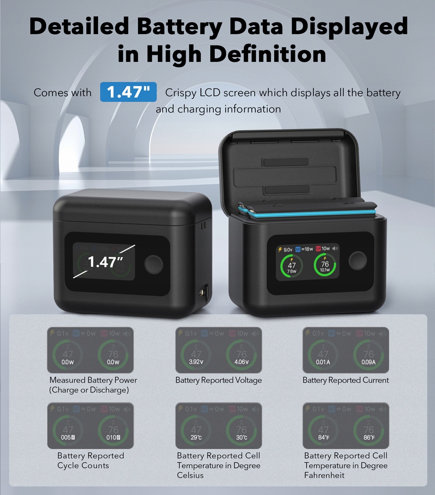 Непревзойденный интеллект: поставляется с 1,47-дюймовым ЖК-экраном высокой четкости, который отображает показатели в реальном времени (SOC, напряжение, циклы работоспособности, температуру, возможности источника питания) для информированного управления батареей. Узнайте состояние своего аккумулятора с первого взгляда и ясности.