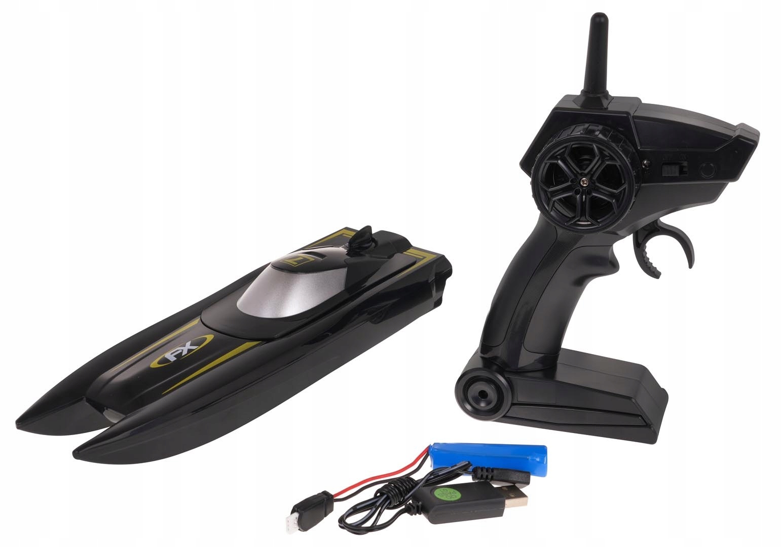 Скоростной катер с дистанционным управлением для детей от 14 лет и взрослых. Он изготовлен из пластика, что обеспечивает его стабильную структуру. Лодкой очень легко управлять вперед, назад и поворачивать вправо и влево. Более того, моторная лодка имеет специальный датчик, благодаря которому она включается только в воде и выключается при вынимании из воды. Лодка питается от аккумулятора 650 мАч 3,7 В (входит в комплект), пульт дистанционного управления от 2 батареек АА 1,5 В (в комплект не входят).
