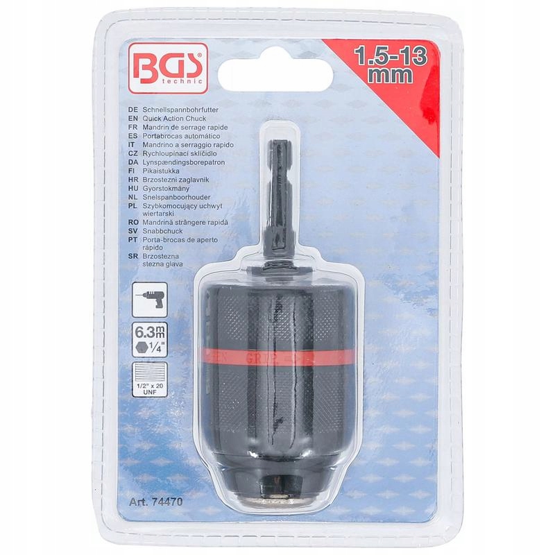 быстрое газовое сцепление металлической версии 6,3 мм (1/4 ") шестиугольной сцепления) x 20 UNP 1,5 - 13 мм, BGS 74470 h1>