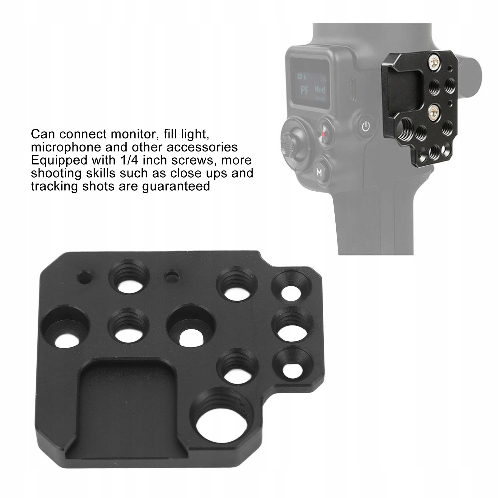 1. Применение: Разработанный для Ronin S, SC, RS2, RS3, с помощью этой быстросъемной пластины вы можете быстро и легко переключаться между различными аксессуарами, максимально повышая эффективность во время съемок.