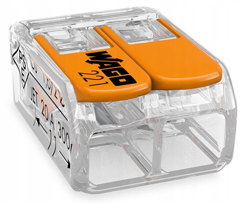 Установочные фитинги из серии 221 предназначены для всех типов кабелей. По сравнению с серией 222, они на 40% меньше и даже проще в использовании. Благодаря небольшим размерам, они идеально подходят для установки в небольшом пространстве, вы можете использовать их для установки однократных, ссылок и многочисленных кабелей в установках. Благодаря прозрачному корпусу вы можете легко проверить, правильно ли вставлены и изолированные провода по правильной длине, и благодаря двум доступным измеренным отверстиям вы можете проверить, что провода хорошо сжаты. Рычаги высвобождения легко позволяют затягивать и замедлить провода. Максимальный номинальный ток фитингов составляет 32A/450V.