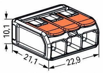 Быстрые соединители WAGO серии 221применяются для соединения многожильных, однопроволочных и многожильных проводов с перекрестием сечением от 0,2 мм² до 4 мм²