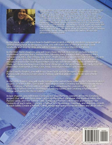 В этой книге вы узнаете, как создать с нуля систему управления базами данных MySQL с использованием PyQt. При разработке графического пользовательского интерфейса вы будете использовать инструмент Qt Designer. Постепенно и шаг за шагом вас научат использовать MySQL в Python. В первых трех главах вы изучите основные операторы MySQL, в том числе, как реализовать запросы данных, сортировку данных, фильтрацию данных, объединение таблиц, группировку данных, подзапросы данных и операторы установки. Помимо изучения основных операторов SQL, вы также шаг за шагом научитесь разрабатывать хранимые процедуры в MySQL. Сначала мы познакомим вас с концепцией хранимых процедур и обсудим, когда вам следует их использовать. Затем мы покажем вам, как использовать основные элементы кода процедуры, такие как оператор создания процедуры, if-else, регистр, цикл, параметры хранимой процедуры. В четвертой главе вы узнаете: как PyQt и Qt Designer используются для создания графических интерфейсов Python; Как создать базовый графический интерфейс Python, в котором используются строковое редактирование и кнопка. В пятой главе вы изучите: Создание исходных трех таблиц в проекте школьной базы данных: таблица учителя, таблица классов и таблица предметов; Создание файлов конфигурации базы данных; Создание графического интерфейса Python для просмотра и навигации по содержимому каждой таблицы. Создание графического интерфейса Python для вставки и редактирования таблиц; и Создание графического интерфейса Python для объединения и запроса трех таблиц. В последней главе вы узнаете: Создание основной формы для соединения всех форм; Создание проекта, который добавит в базу данных школы еще три таблицы: таблица «Студент», таблица «Родитель» и таблица «Обучение»; Создание графического интерфейса Python для просмотра и навигации по содержимому каждой таблицы; Создание графического интерфейса Python для редактирования, вставки и удаления записей в каждой таблице; Создайте графический интерфейс Python для объединения и запроса трех и всех шести таблиц.