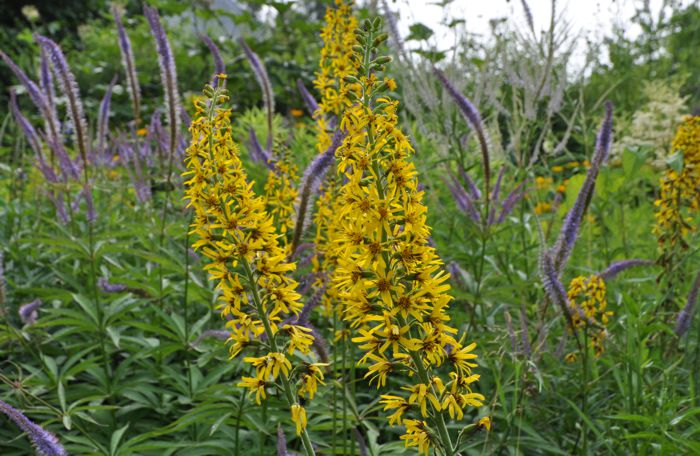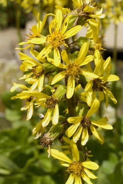 Язык сибирский - высокое многолетнее растение, вырастающее до 1,5 м в высоту. Цветки жёлтые, собраны в кисти длиной до 40 см. Цветы июль - август. Листья с крупнозубчатыми краями, длиной около 25 см и шириной до 30 см, интенсивно-зеленого цвета.