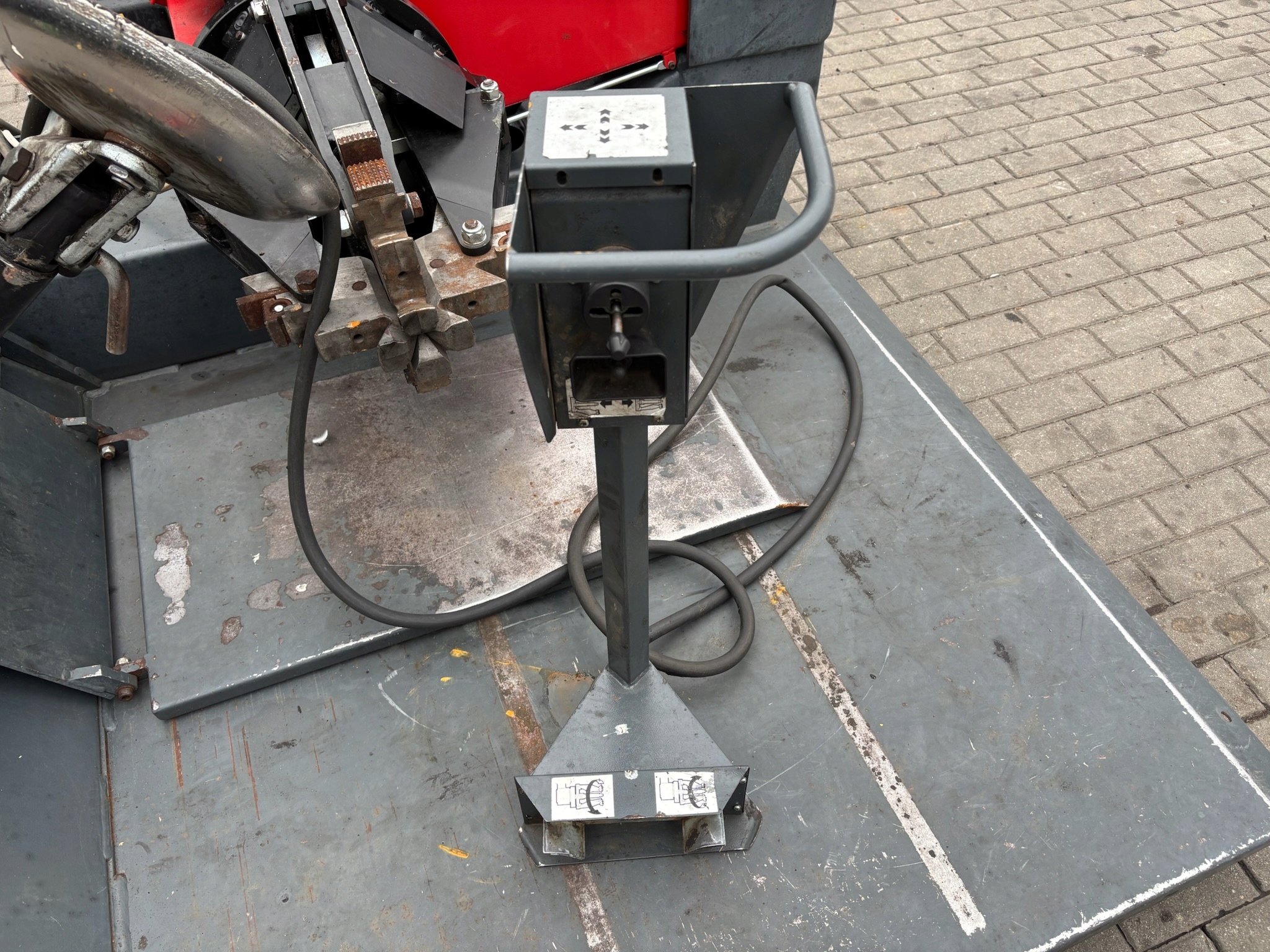 Монтажная машина, импортированная из Германии, как новая! Полностью технически эффективно, работает безупречно. У него есть эргономичный джойстик для контроля веретена и смены рабочей руки. Очень хорошая компания - Sica, фара, когда дело доходит до вулканизационного оборудования. Стоимость нового на данный момент составляет 55 000 человек.